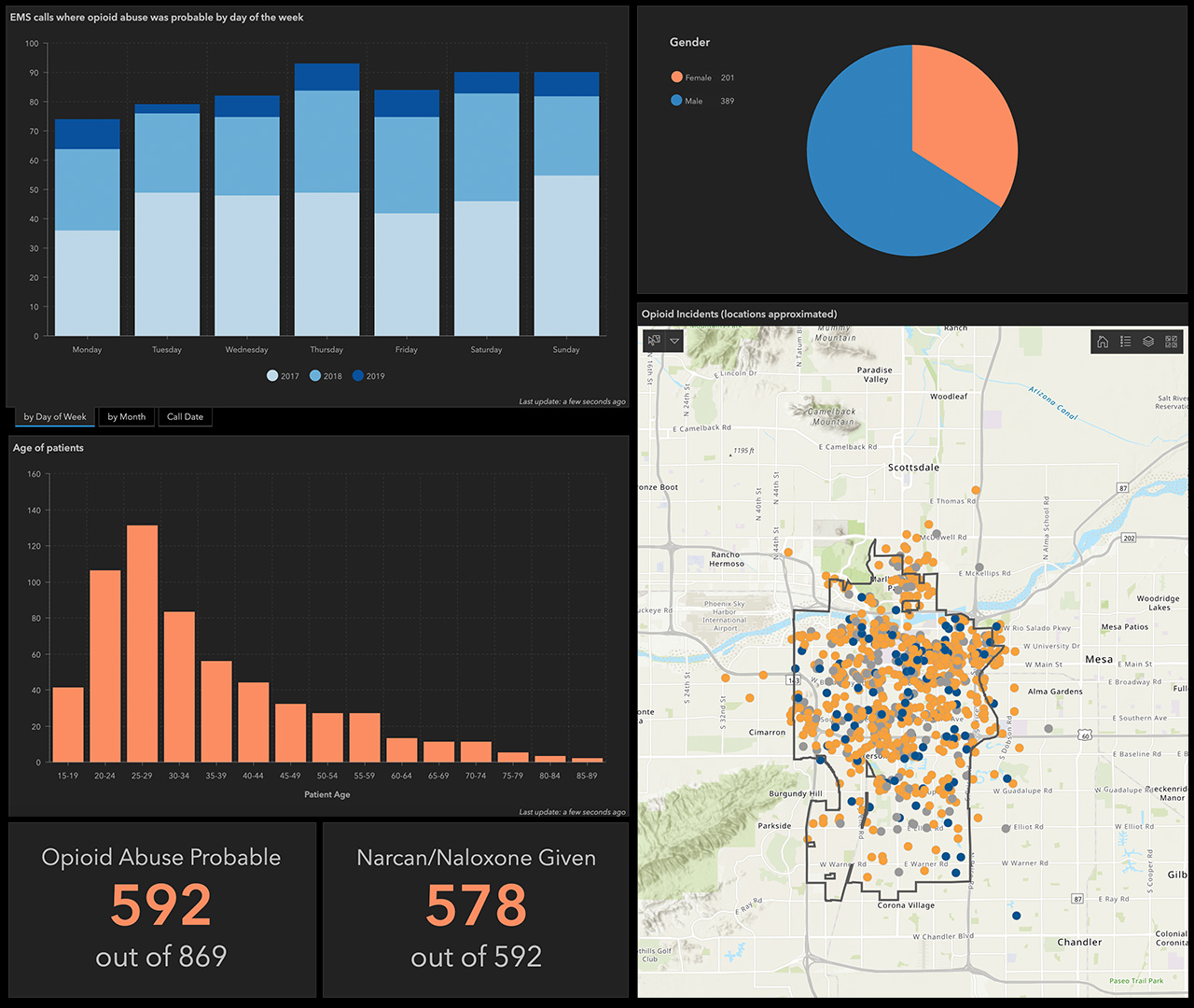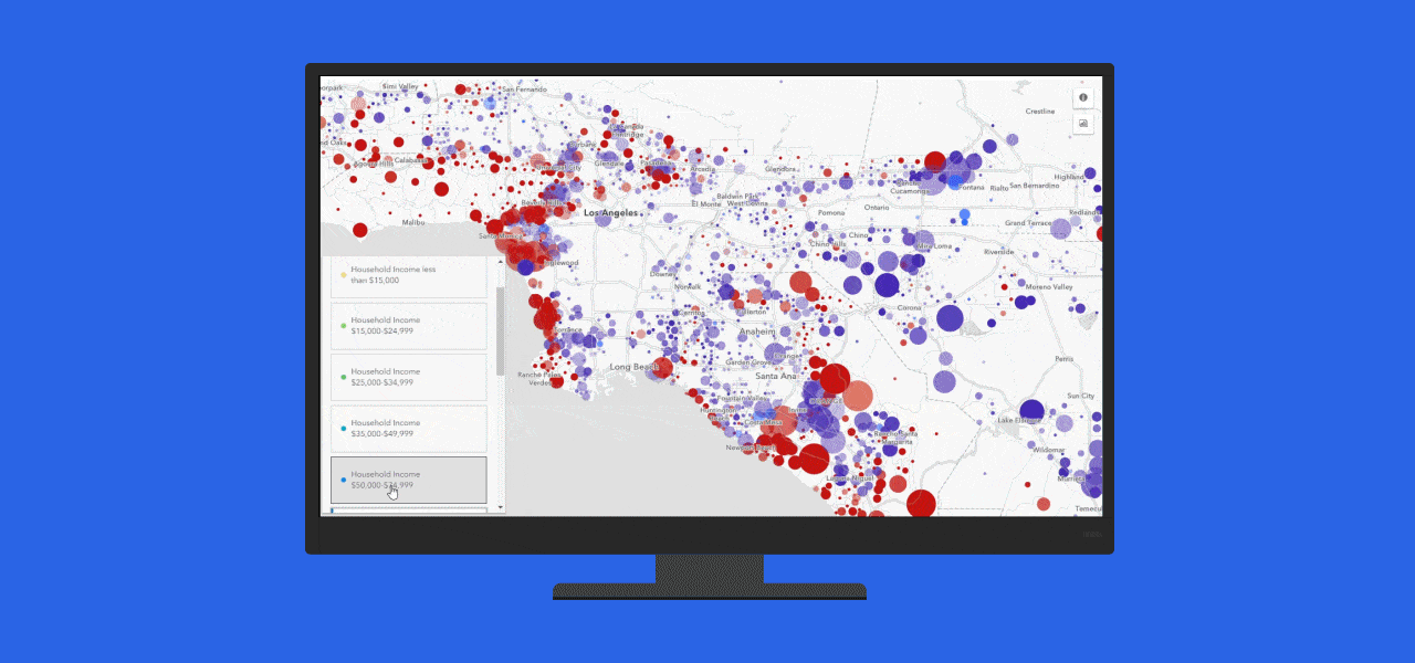 Los mapas web interactivos proporcionan tanto a usted como a su equipo la oportunidad de explorar y actualizar datos. A medida que se acerca, datos e información adicionales pasan a estar disponibles. Haga clic en el mapa para descubrir datos específicos de la ubicación mostrados en gráficos e infografías. Filtre los datos y cambie la simbología para obtener perspectivas adicionales y revelar nuevos patrones.
