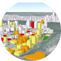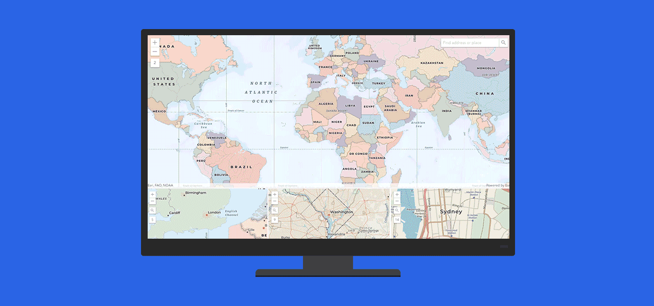 Descubra y perfeccione la historia de sus datos usando un conjunto de herramientas de análisis intuitivas, como por ejemplo tiempos de conducción y zonas de influencia. Smart mapping, desarrollada por Esri, utiliza estilos, colores y símbolos controlados por datos para guiar su exploración y transformar sus datos sin procesar en información útil. También puede comprender mejor sus datos visualizándolos con diferentes estilos de mapa.