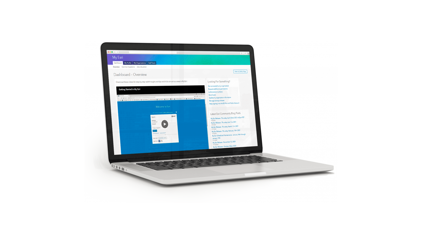 El portal My Esri es la página web que permite, a los administradores registrados, acceder a la descarga de los instaladores y gestionar los códigos de licencias de ArcMap, ArcGIS Enterprise, entre otros productos que lo requieran.