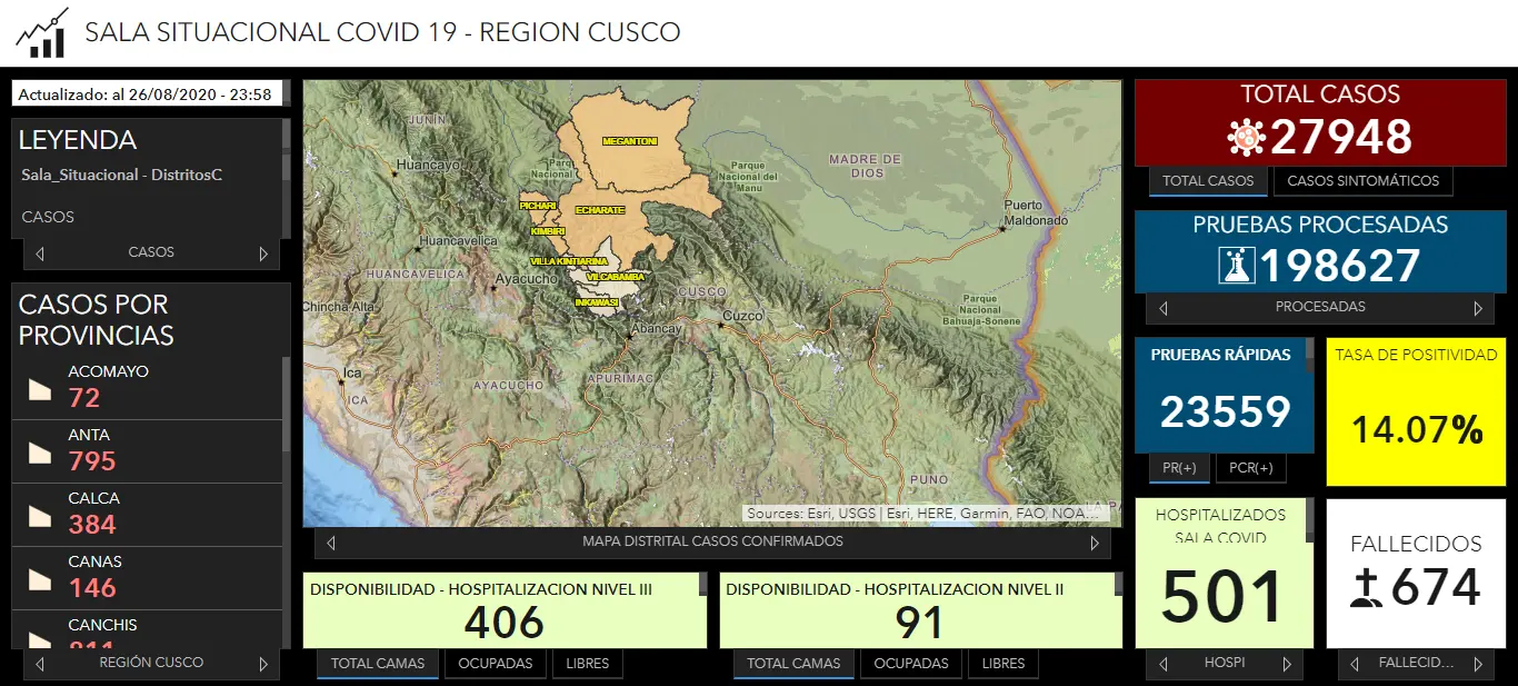 La Dirección Regional de Salud – Cusco elaboró un tablero de control con la plataforma ArcGIS para tomar decisiones estratégicas para combatir el COVID-19.