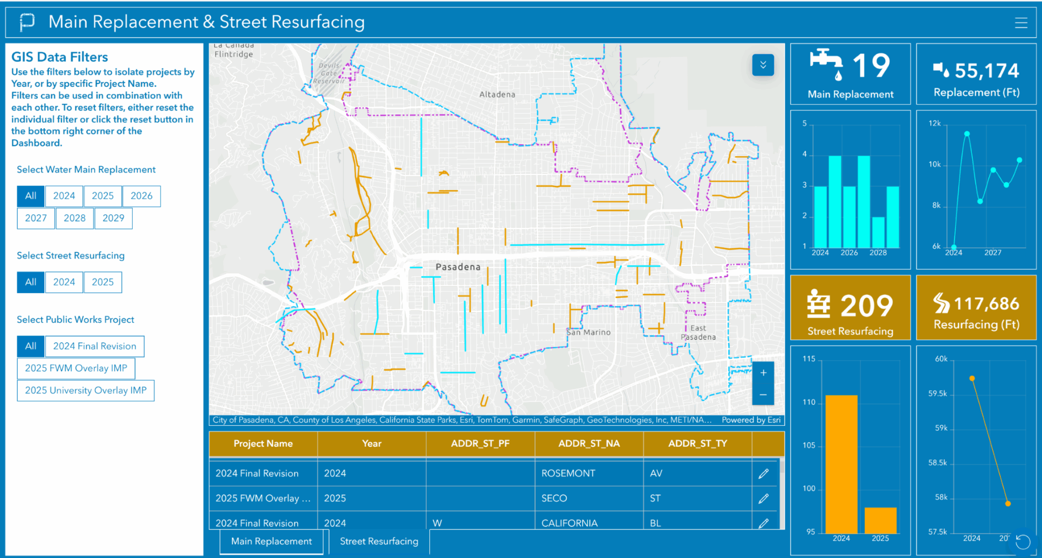 En el centro de esta integración se encuentra el Pasadena Water GIS Hub, una plataforma interactiva para que el público, los equipos internos y los socios interorganizacionales comprendan los proyectos activos, los planes propuestos y los registros históricos relacionados con Pasadena Water.