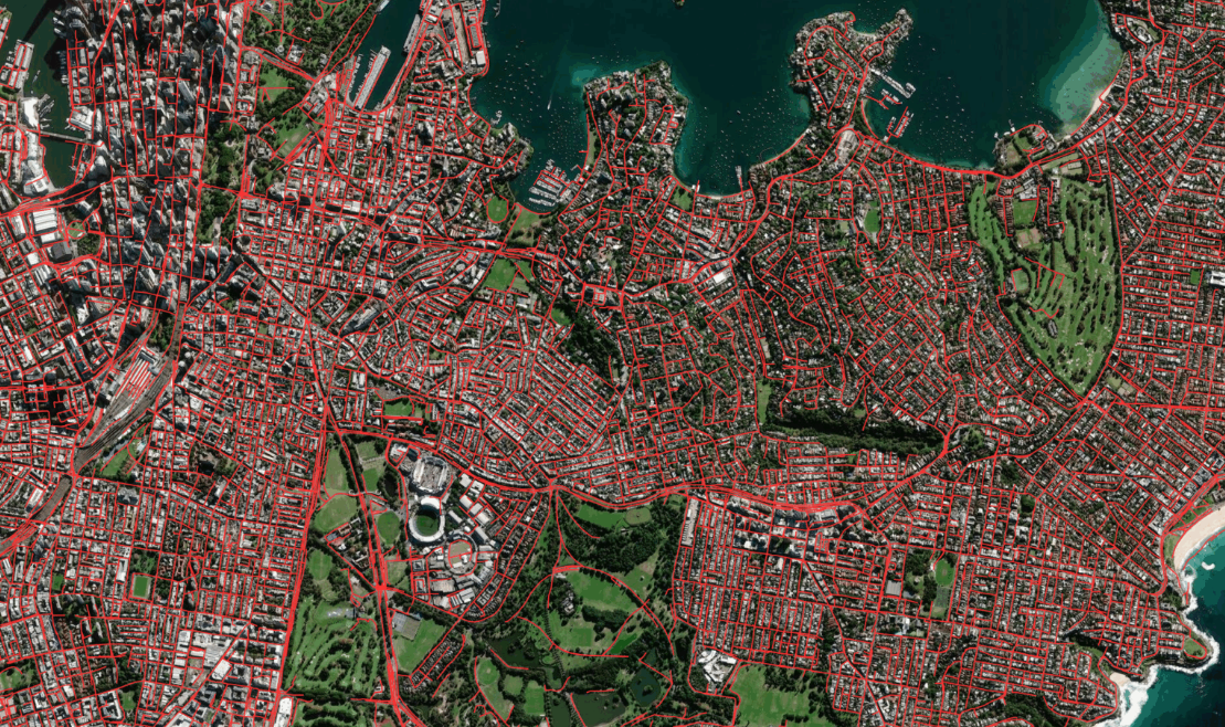 Este es el resultado de un modelo de aprendizaje profundo que se utiliza para extraer carreteras de imágenes aéreas/satelitales de alta resolución (1 metro).