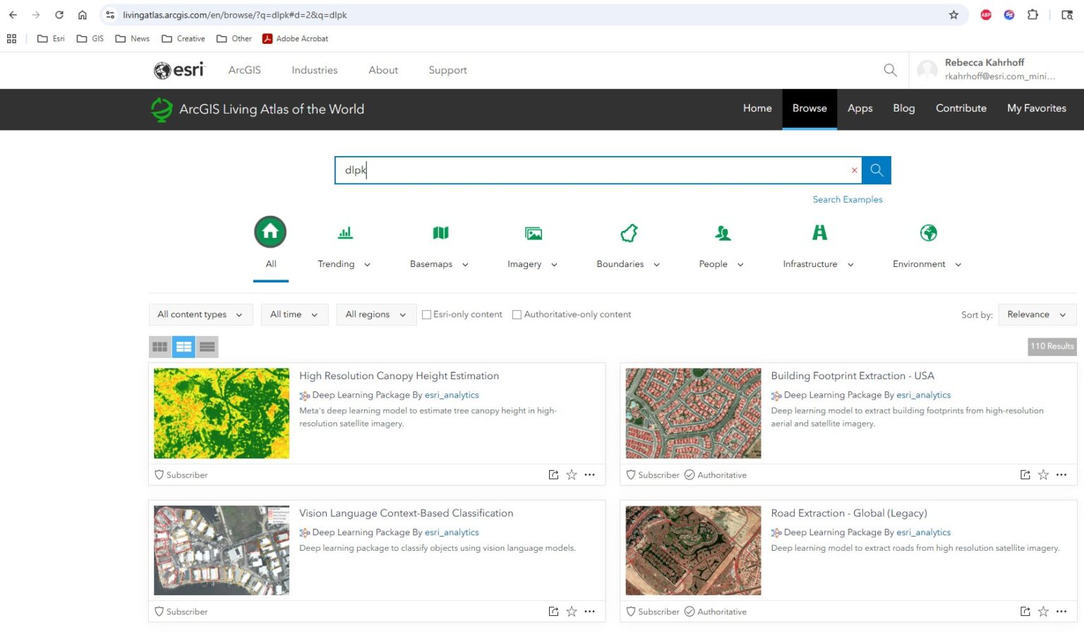 Búsqueda de paquetes de aprendizaje profundo en Livingatlas.arcgis.com