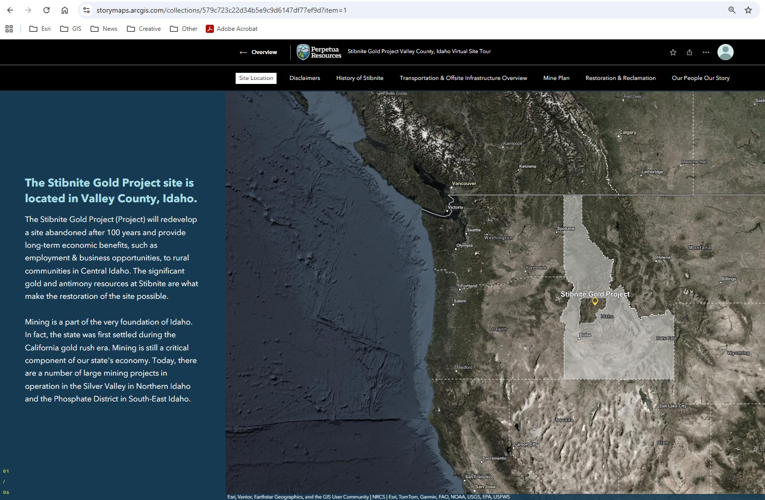 StoryMap de Perpetua Resources, proyecto de oro Stibnite en el condado de Valley, Idaho, EEUU.