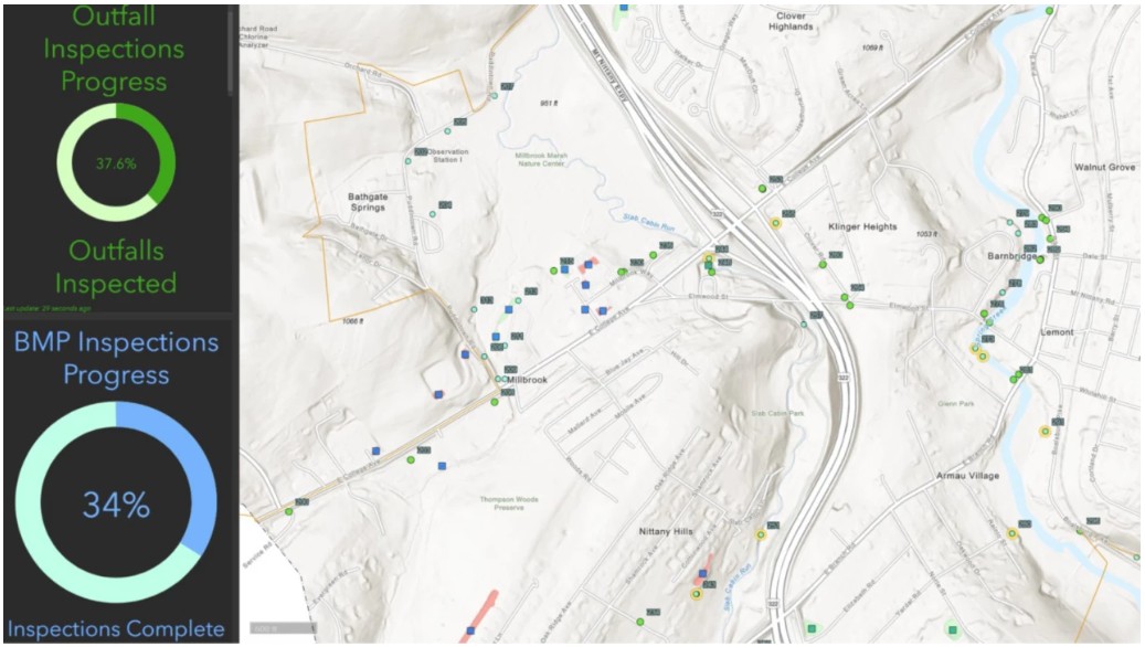 Un tablero interno para que los gerentes y supervisores realicen un seguimiento del progreso de la inspección de aguas pluviales. https://www.esri.com/en-us/lg/product/stories/pennsylvania-dep-case-study