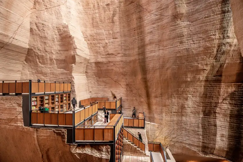 Esta imagen épica muestra una ingeniosa reencarnación de una cantera china abandonada como biblioteca al aire libre. La «Cantera 8» es uno de los nueve destinos turísticos elegidos por el gobierno local entre miles de canteras en desuso en el condado de Jinyun, China. Los trabajadores extrajeron toba, una roca formada a partir de ceniza volcánica, durante más de 1300 años hasta el año 2000.