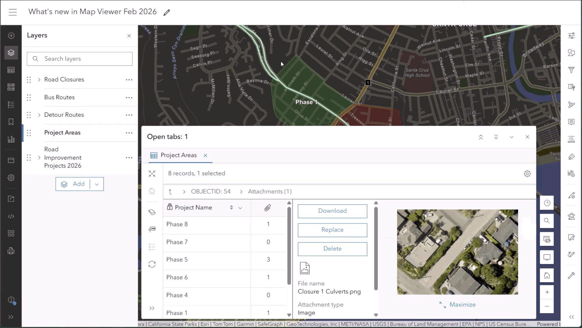 - Al trabajar con archivos adjuntos, ahora puede ver fotos y archivos relacionados directamente en la tabla de atributos, y maximizarlos para verlos a página completa.